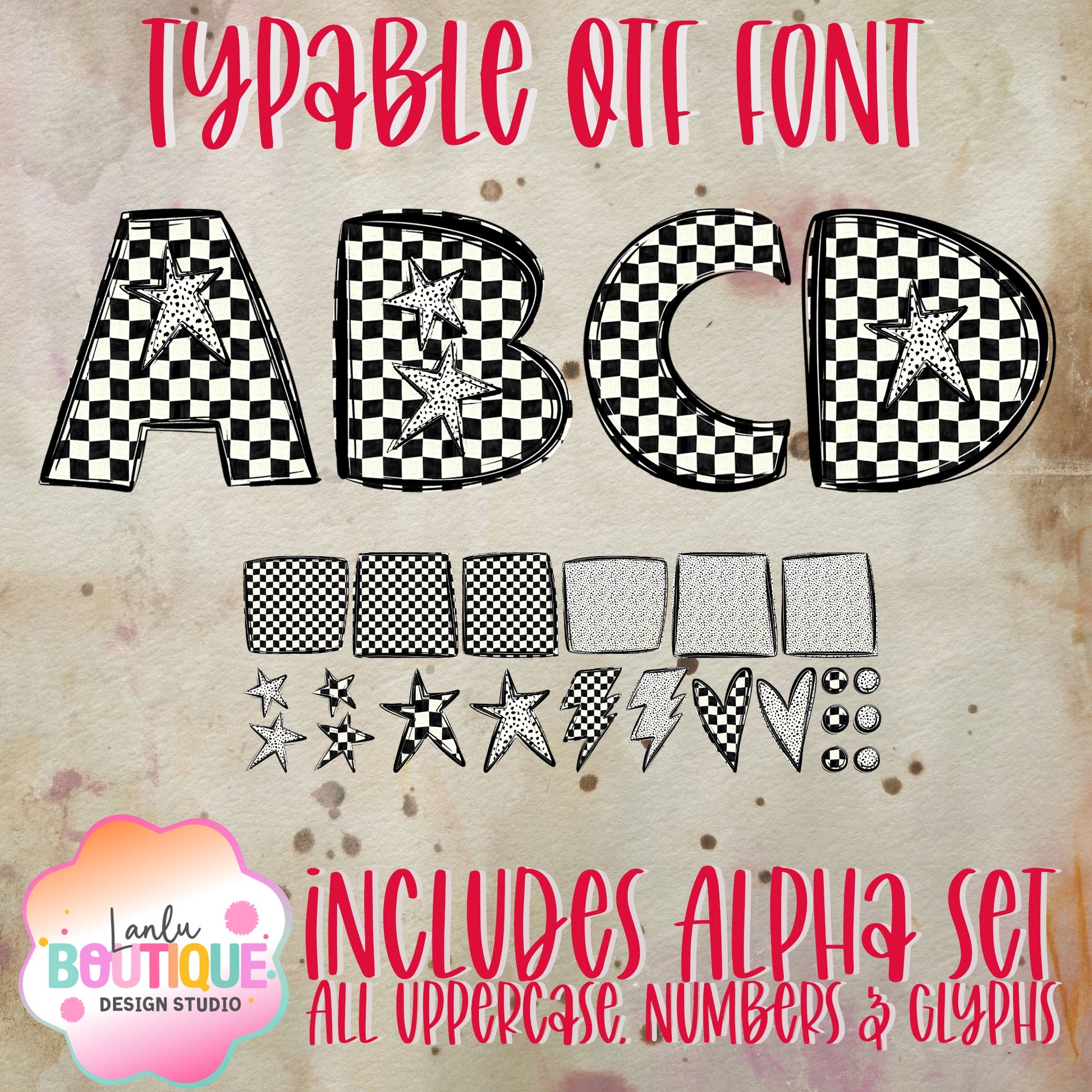 The Checkered Spirit OTF font blends timeless checkered patterns with clean, typable lettering for a sophisticated look. Perfect for adding a subtle yet stylish edge to your design projects, it enhances branding, invitations, and creative expressions with refined character.